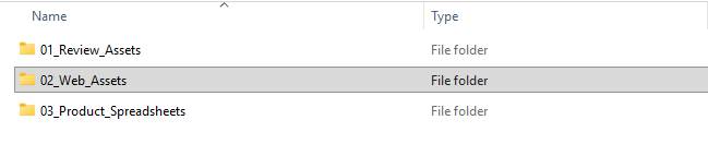The Web Assets folder contains 6 subfolders to submit your approved assets for publication.